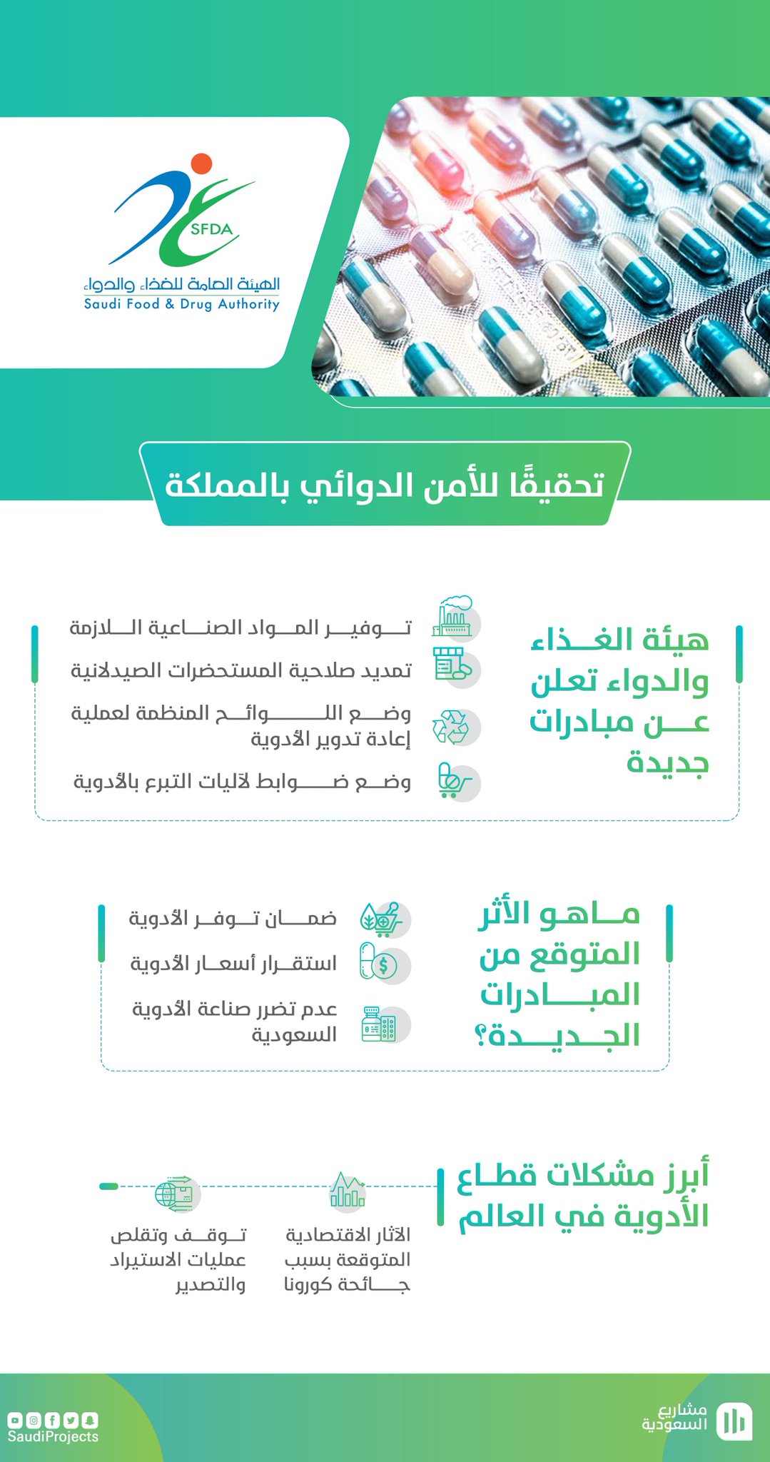 مشاريع السعودية A Twitter لضمان توفير الأدوية بكميات كافية واستقرار أسعارها وتحقيق ا لـ الأمن الدوائي أعلنت هيئة الغذاء والدواء عن مبادرات جديدة Https T Co U7z1kfjciq